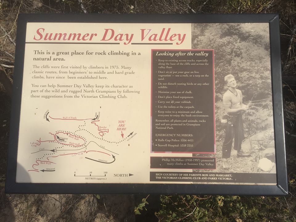 Note there is also some extra background info on Summerday Valley on a post at Save Grampians Climbing.
